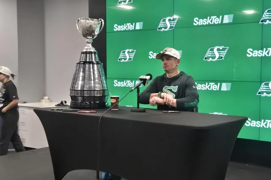 Members of the Saskatchewan Roughriders kept the Grey Cup celebration going as the team held its victory parade down Albert Street and then spoke to fans outside the Legislative Building.