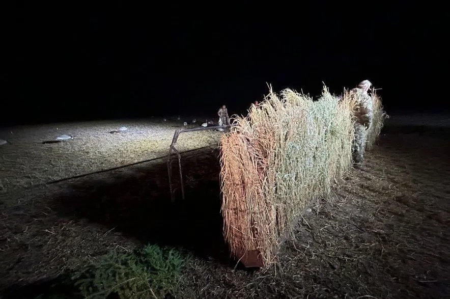 Once the blind is set, the group sits and waits. Hunts can last hours, with long stretches of quiet between brief flurries of action. (Brittany Caffet/650 CKOM)