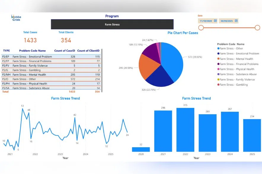 “That’s one of our main referral sources. We also refer them to the mental health and addiction services that are in their home community, or close to their farming operation, so that they don’t have to come into Regina because we monitor the farm stress calls for the entire province out of Regina,” said Wilkins.