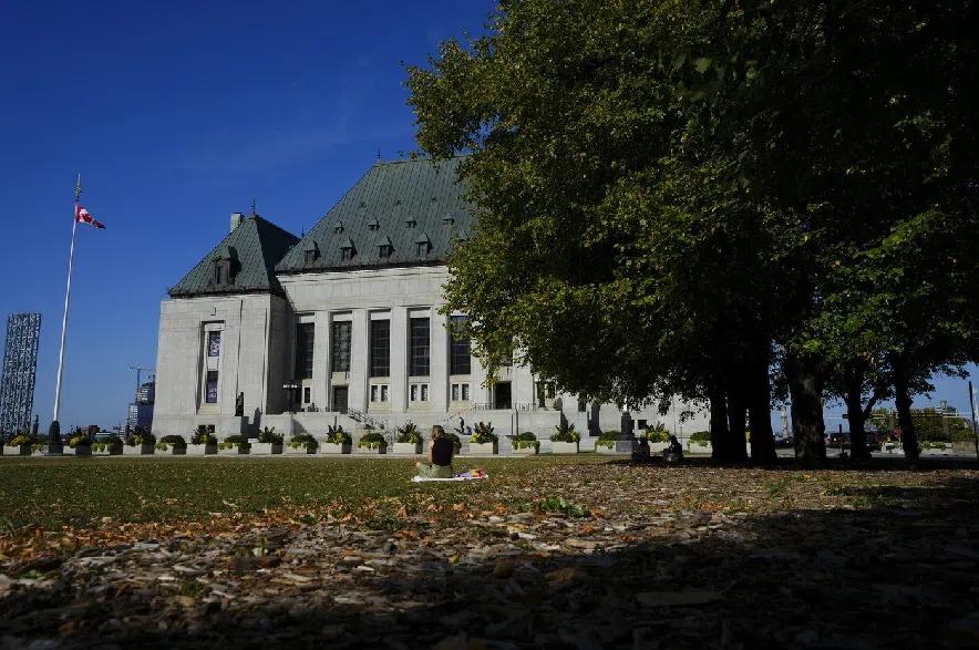 People take a break on the front lawn of the Supreme Court of Canada in Ottawa on Monday, Oct. 6, 2025. THE CANADIAN PRESS/Sean Kilpatrick