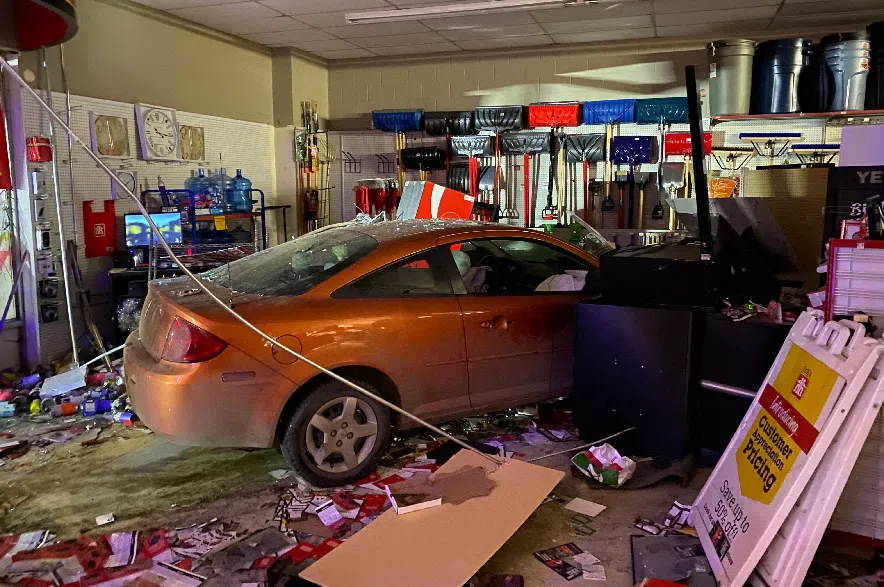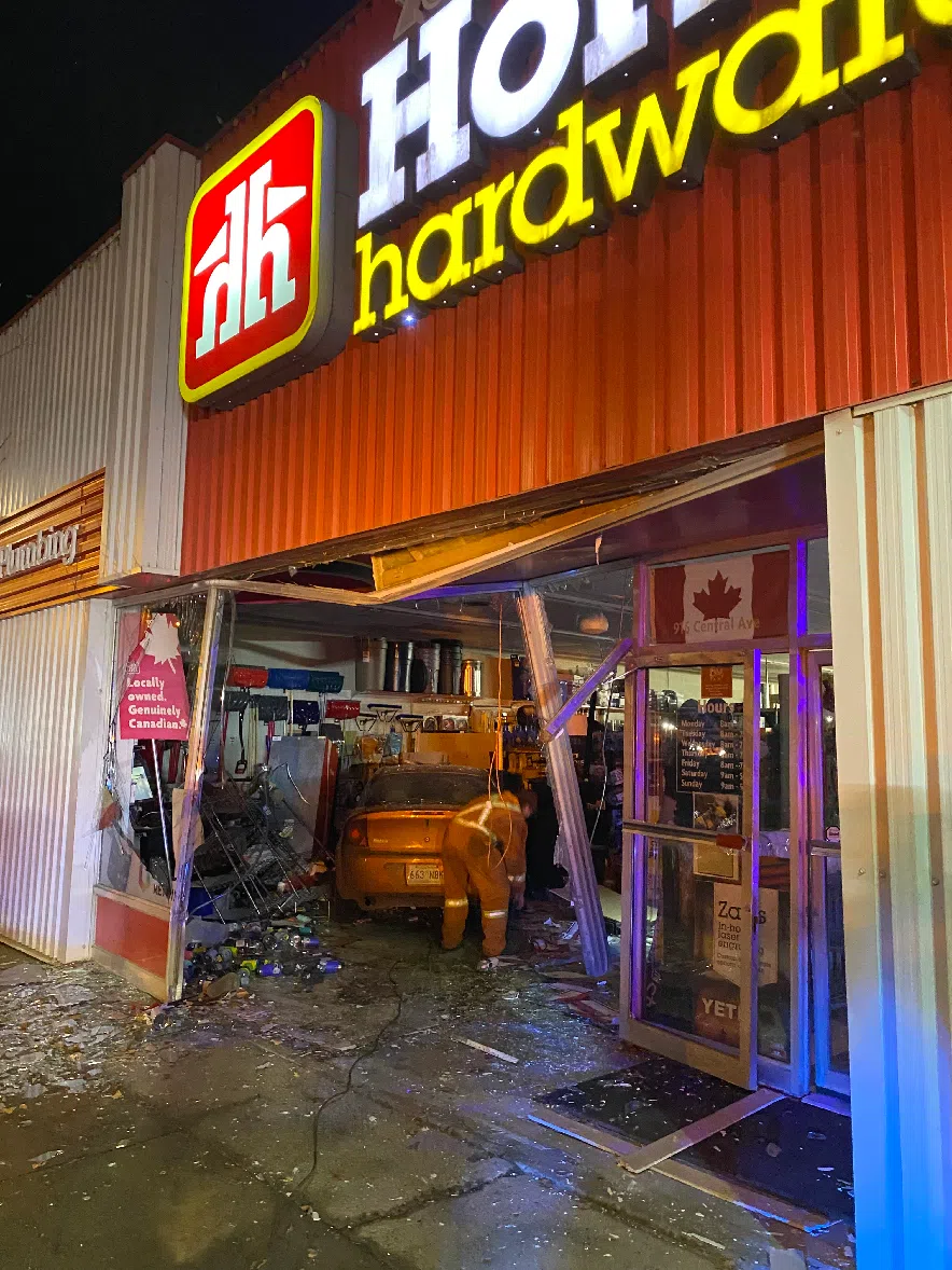 Majken Cooke, marketing manager for Zak’s Home Hardware, said the crash happened at around 1:30 a.m., and when staff members alerted by the alarm arrived at the store, they found the car sitting inside the store’s smashed front entrance.
