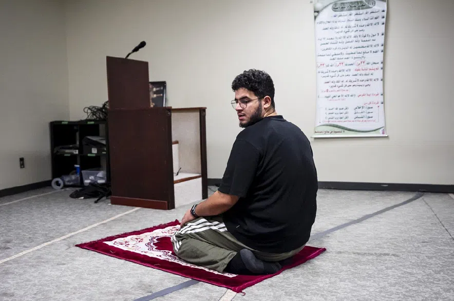 Samy Khelefi does his afternoon prayer in the prayer room organized by the Muslim Students' Association, at Concordia University in Montreal, Wednesday, Nov. 26, 2025. THE CANADIAN PRESS/Christopher Katsarov