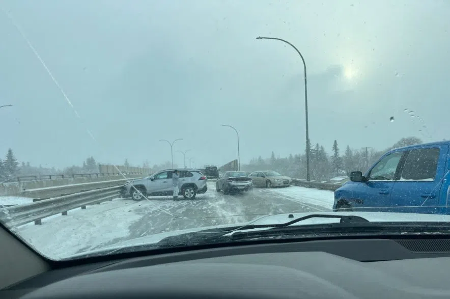Saskatoon Police Service (SPS) said crashes were still being reported to them on Friday afternoon and motorists should drive to the conditions by reducing speed, making sire their vehicles were cleared of snow and ice, increasing their distance between any vehicle ahead, and allowing extra travel time.