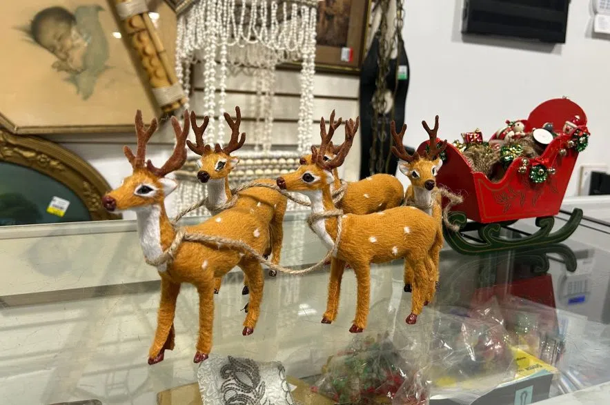 From new decor still in its original packaging to vintage gems like this, there’s a wide variety of Christmas magic just waiting to be found in thrift stores around the province. (Brittany Caffet/650 CKOM)