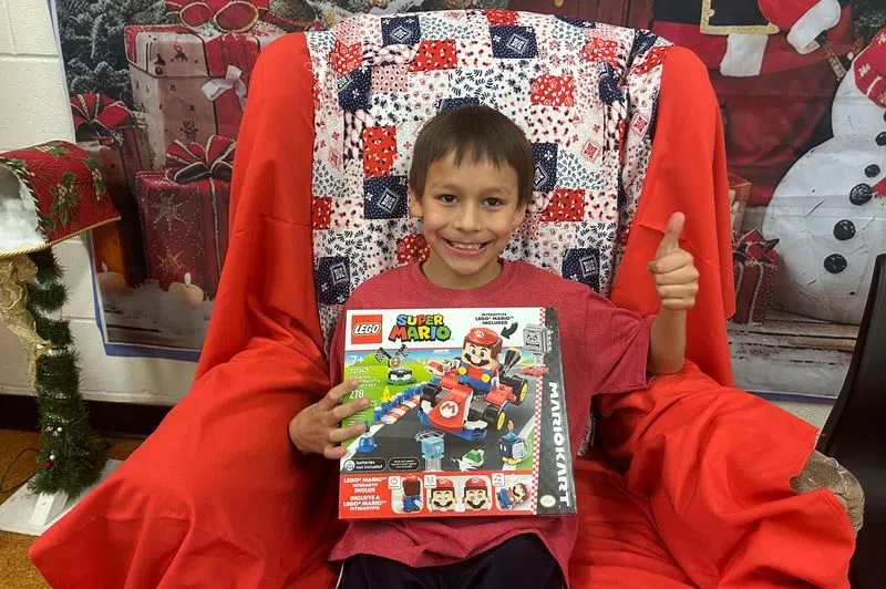 Kashtyn said he is a big gamer, so he was thrilled with his gift from Santa. (Brittany Caffet/650 CKOM)