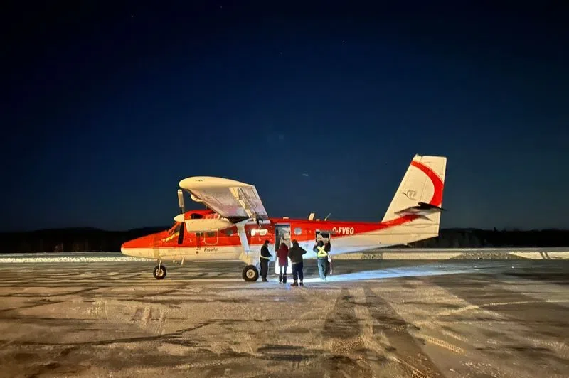 He comes in on a Twin Otter — red suit bright against the northern sky, boots dusted with snow and a cargo hold full of gifts bouncing with every bump in the air.