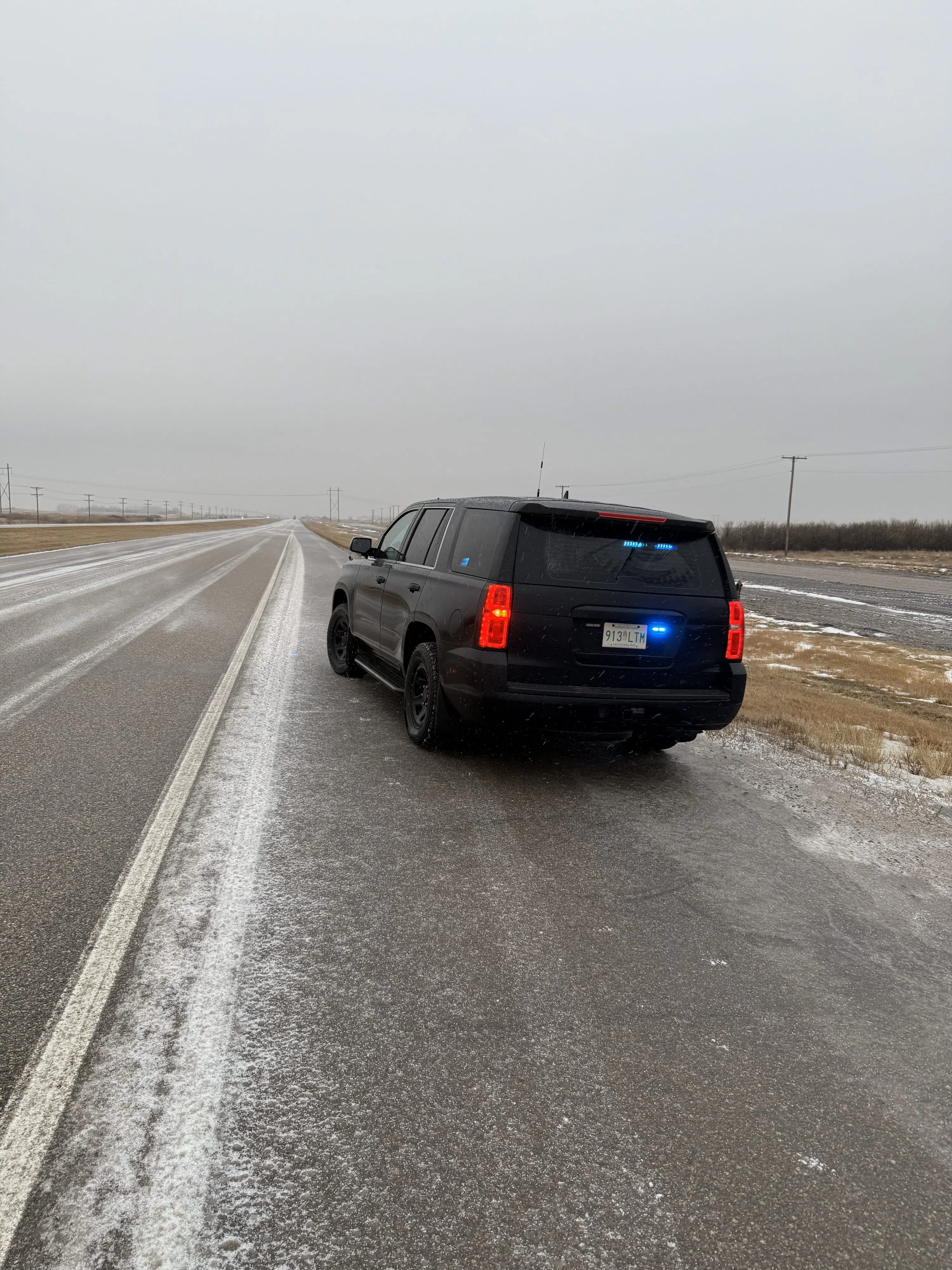 A Lumsden RCMP officer responded to a call for service on Highway 11, just west of Lumsden. The officer reported very ice conditins and ice pellets falling in the area. (Saskatchewan RCMP/submitted)