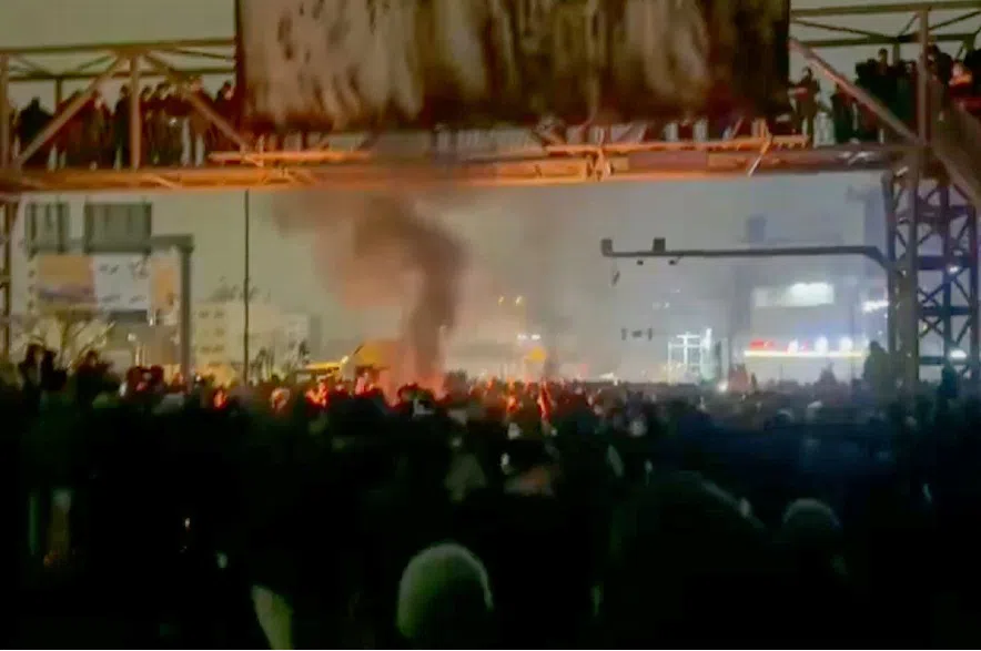 In this frame grab from footage circulating on social media from Iran shows protesters taking to the streets despite an intensifying crackdown as the Islamic Republic remains cut off from the rest of the world in Tehran, Iran, Friday, Jan. 9, 2026.(UGC via AP)