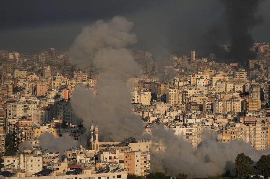 Smoke rises from Israeli airstrikes in Dahiyeh, a southern suburb of Beirut.