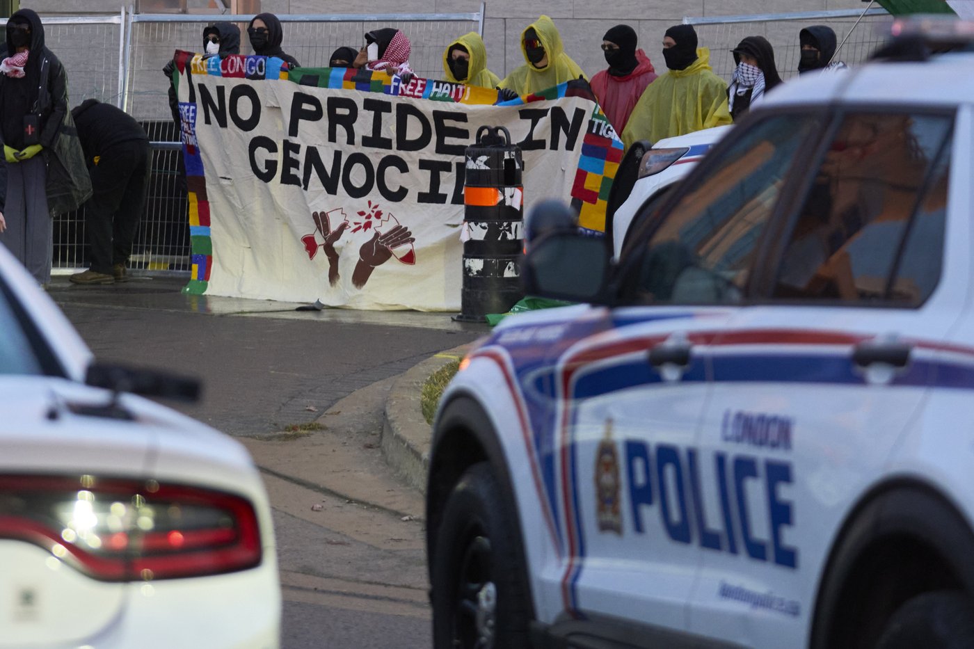 LONDON — A group of pro-Palestinian protesters disrupted the start of a defence conference in London, Ont., Tuesday morning, blocking off entrances to the building and locking some doors with bicycle locks.