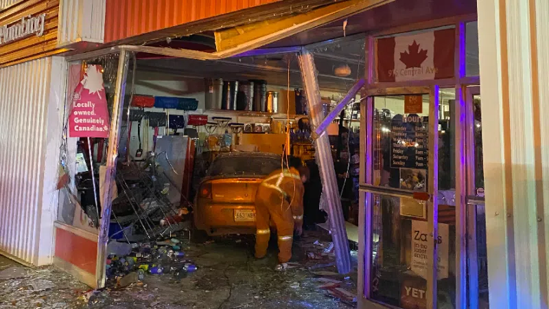 PHOTOS: No injuries reported after car crashes into Zak's Home Hardware on Central Ave.